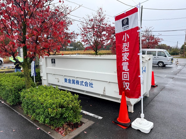 今年は回収用のコンテナを準備して、太田市にお住まいの方を対象に小型家電の回収と東金属でリサイクルできるものとできないものをストラックアウトの的にしてゲーム感覚で当社の業務を紹介しました。