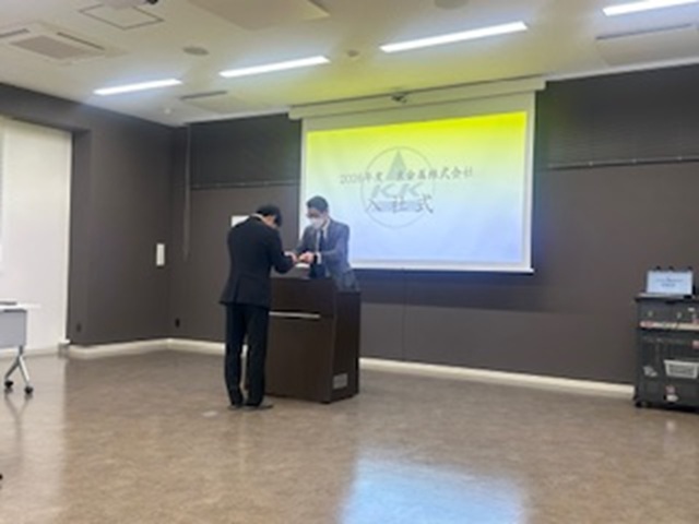 入社式では社長からの祝辞、辞令の交付を行いました。